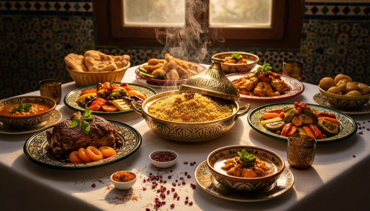 ⏰ Planification : Préparez les makrout et les cornes de gazelle la veille. Le couscous et le tajine peuvent se préparer le matin et être réchauffés doucement. La harira se fait le jour même, 2-3 heures avant le service.